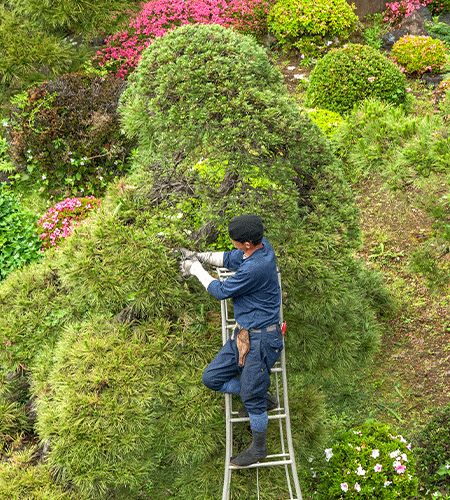 お客様のお宅へご訪問し、樹木の形を整えたり、風通しを良くしたり、手入れをします。